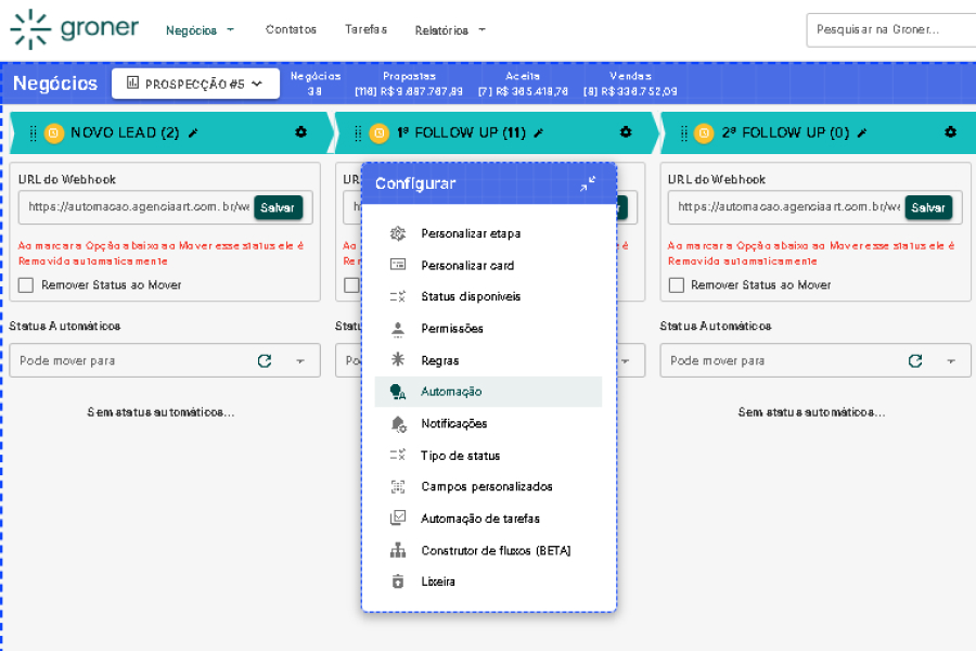 Com automações bem definidas, você garante padrão nas execuções e enxerga claramente onde cada lead está na jornada.