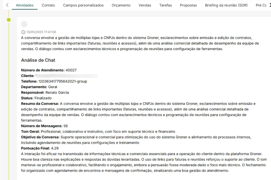 O Analisador de Chat avalia cada conversa por escrito e identifica falhas que passam batido: respostas genéricas, falta de clareza, tom frio ou argumentação fraca. Você descobre quem realmente sabe conduzir uma venda